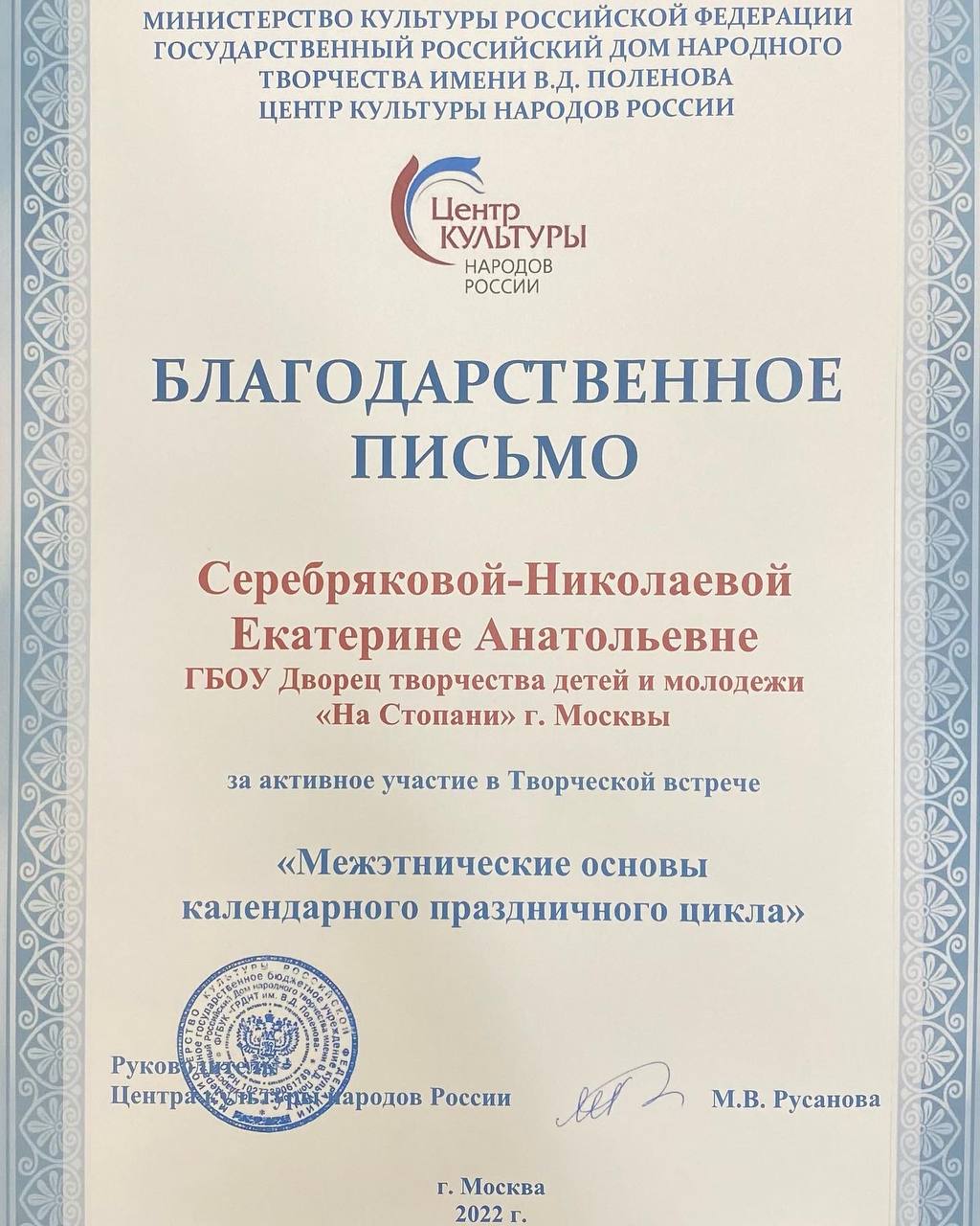 Педагоги и обучающиеся коллектива "Мир искусства" выступили на Творческой встрече «Межэтнические основы календарного праздничного цикла» в Государственном Российском Доме народного творчества имени В.Д. Поленова.