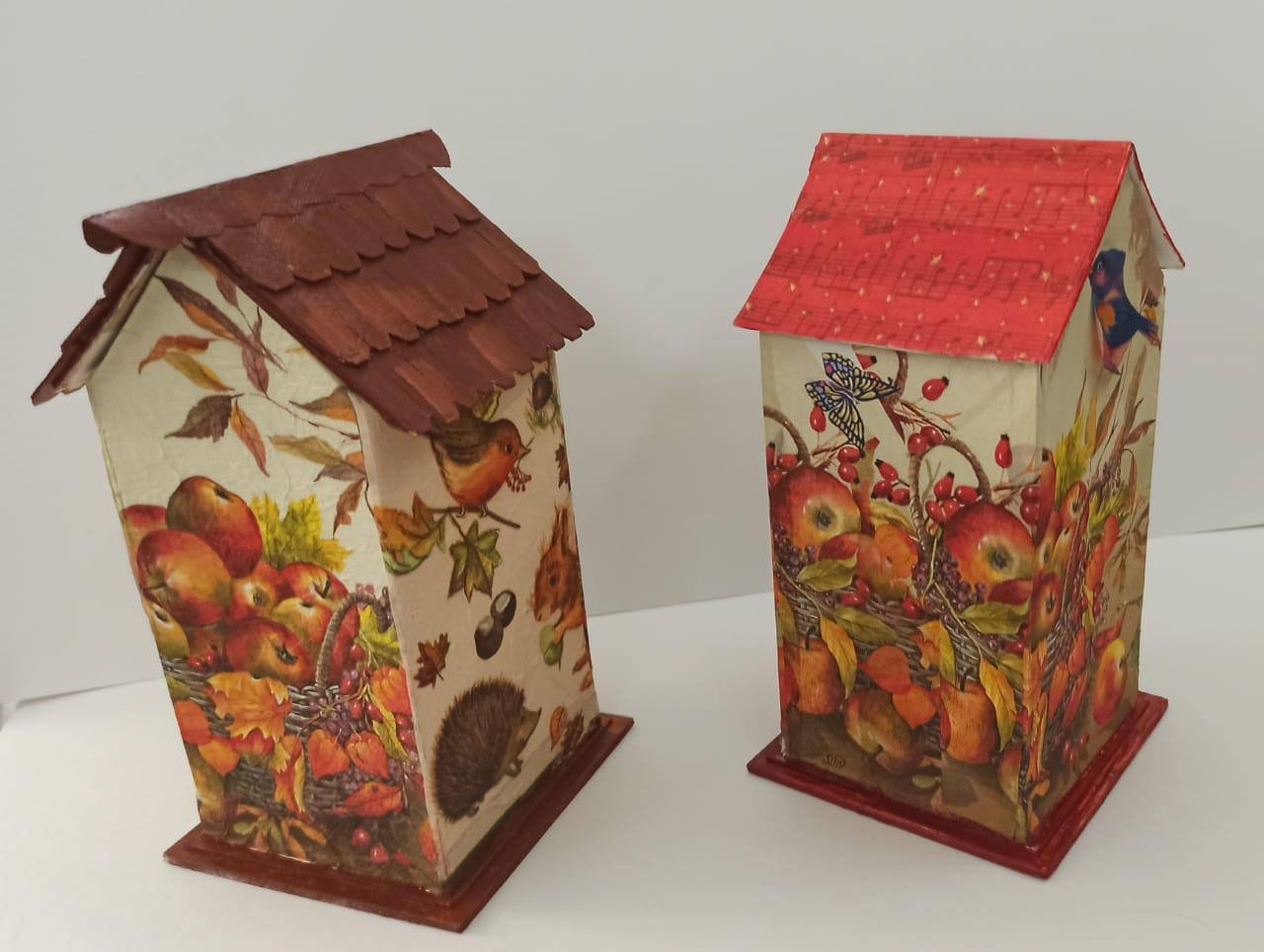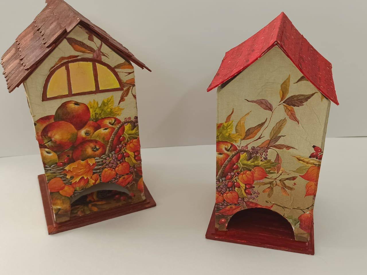 Чайные домики - не только достойное украшение, но и очень полезная вещь для кухни! Поделки добавили настроения и теперь осенняя погода не омрачит настроение за чаем с историей.
