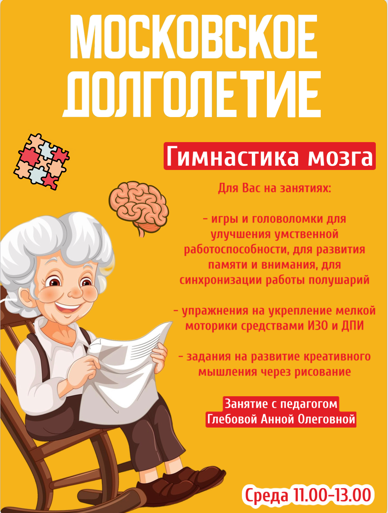 Приглашаем на занятия по "Гимнастике мозга" в группу Московского долголетия!