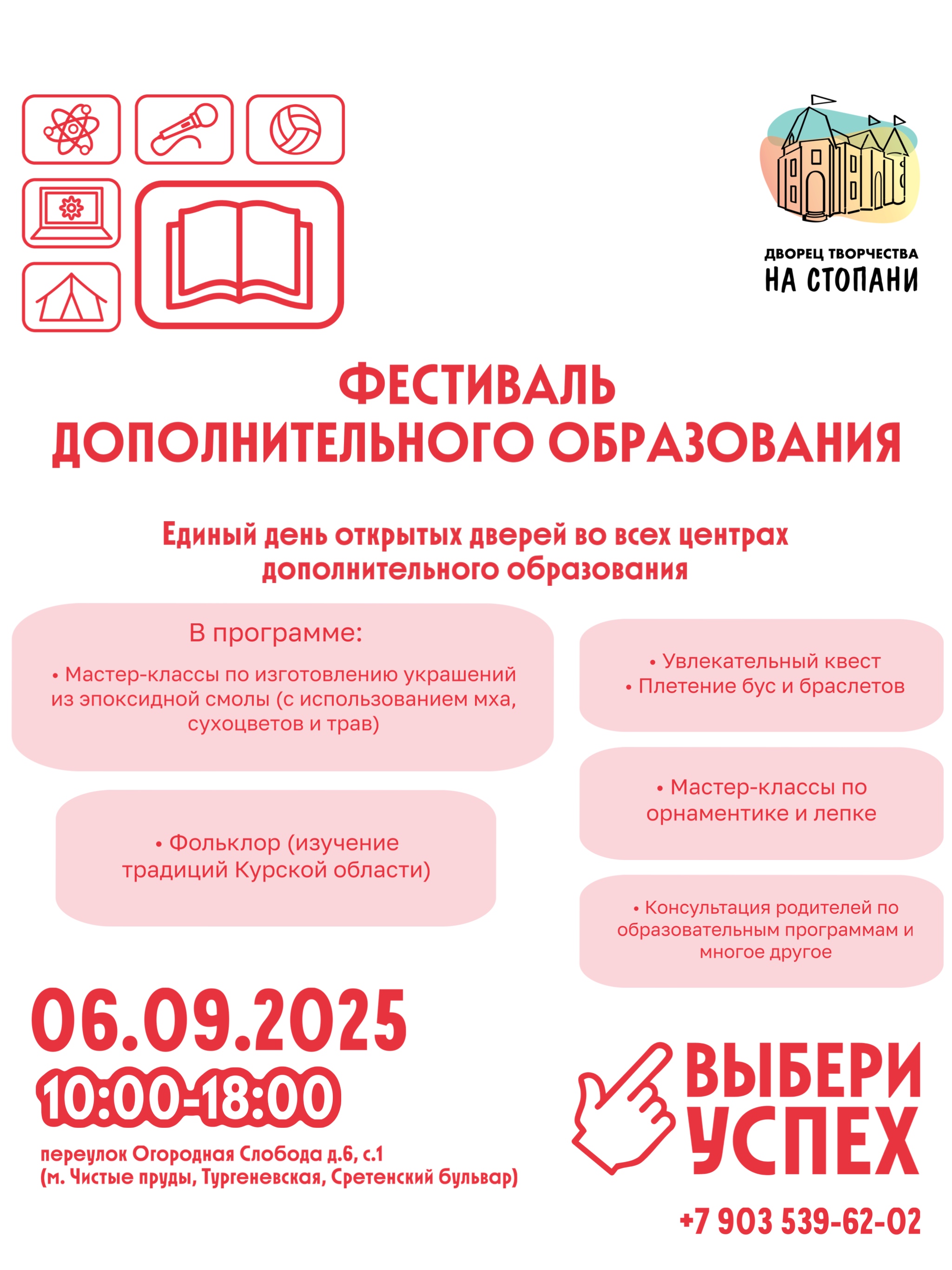 Дворец «На Стопани» приглашает всех желающих на Фестиваль дополнительного образования «ВЫБЕРИ УСПЕХ»!