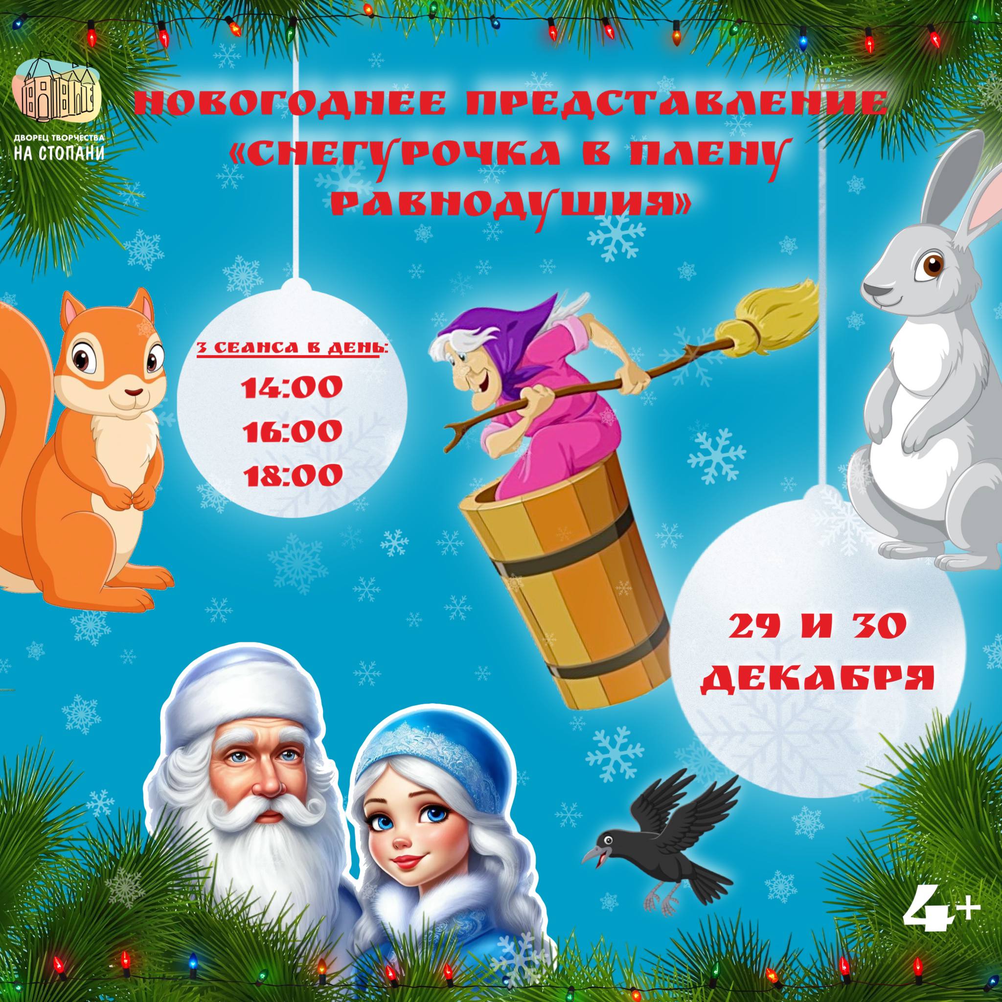 Скоро в Дворце «На Стопани» — новогоднее театрализованное представление «Снегурочка в плену равнодушия»!