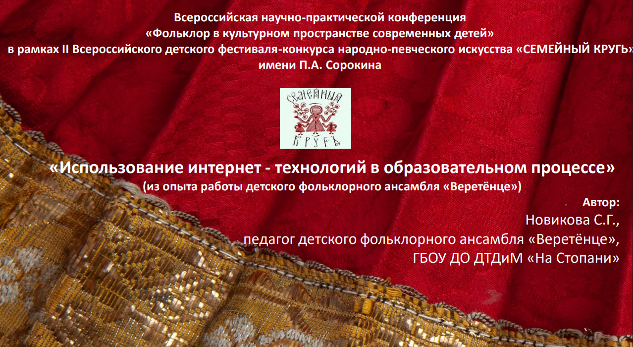 Светлана Геннадьевна выступила с докладом на тему «Использование интернет - технологий в образовательном пространстве (из опыта работы детского фольклорного ансамбля «Веретёнце»).