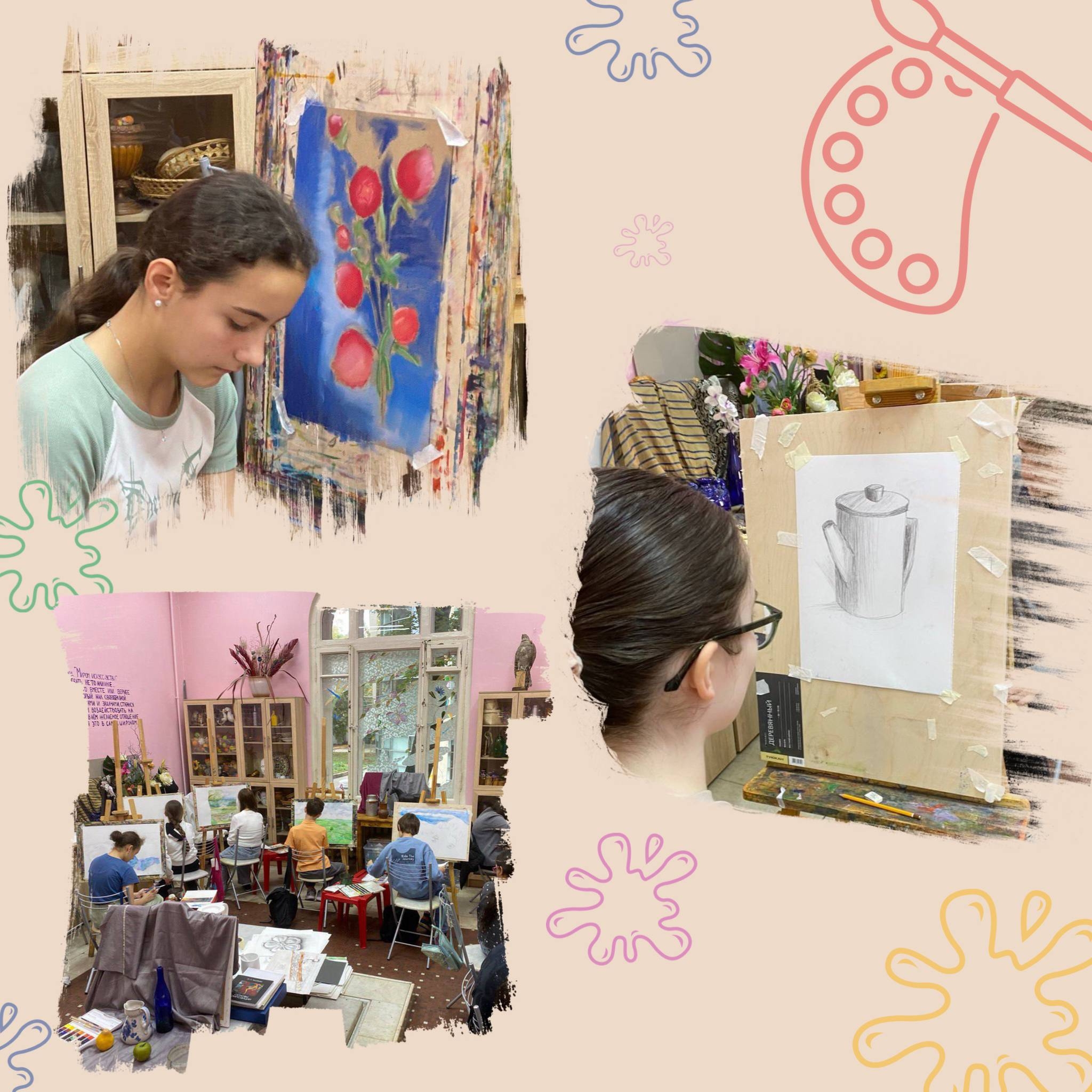 В нашем Дворце есть замечательная художественная студия «Мир искусства», где ребята занимаются с 4 лет! Очень многие ходят в студию больше десятилетия!